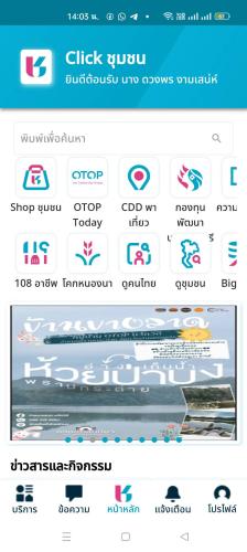 Click ชุมชน รวบรวมข้อมูลและบริการของกรมการพัฒนาชุมชนกว่า 13 เมนู เช่น
