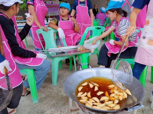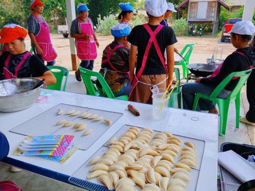 นางยุพา แพงจันทร์พัฒนาการอำเภอนิคมนำ้อูน พร้อมด้วยเจ้าหน้าที่พัฒนาชุมชนอำเภอนิคมน้ำอูน ร่วมกับคณะกรรมการพัฒนาสตรีอำเภอนิคมน้ำอูน ดำเนินโครงการฝึกอบรมอาชีพการทำขนมดอกจอกและขนมกระหรี่พัฟ(กพสอ.นิคมน้ำอูน)